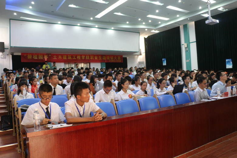 为了培养同学们的就业意识、提升员工自身竞争能力,2016年 11月8日,公司在邵逸夫学术交流中心举行了db真人体育官网第四届“碧桂园” 杯老员工职业生涯规划大赛。出席本次会议的嘉宾有碧桂园地产人力总监王辉、碧桂园地产人力资源经理骆三峰、土木建筑工程公司党委副书记罗邻球、就业指导中心职业指导科韩庆红老师、db真人体育官网就业辅导员、全球职业规划师、国家二级心理咨询师詹达夫老师。