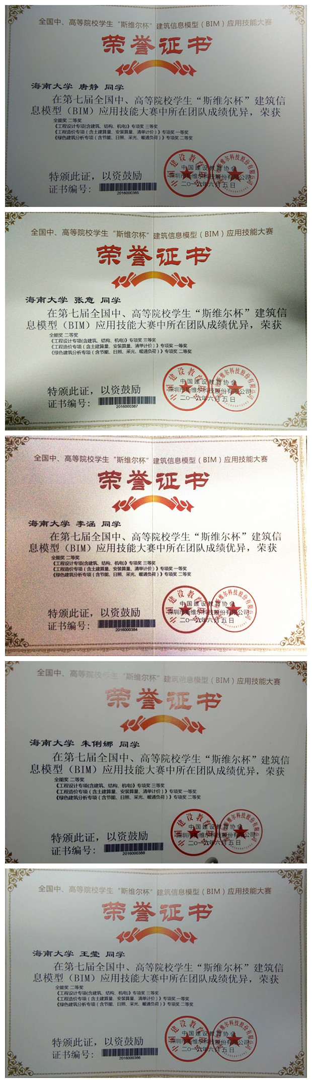 db真人体育官网“南海舰队”代表队在第七届全国中高等院校员工“斯维尔杯”(BIM)应用技能大赛中获得全能奖二等奖,工程造价专项奖一等奖,绿色建筑分析专项奖二等奖、工程设计专项奖三等奖的好成绩。本届比赛的五位参赛队员分别是来自2013级建筑学的张意,2013级土木工程专业的王莹、唐静,2013级工程管理专业的李涵、朱俐娜。新闻部有幸在第一时间对五位队员进行了采访。记者:BIM大赛是国内著名的高校员工竞赛,来自全国各地的高校学子们怀着不同的心情参加比赛,你们是抱着怎样的心态来参加这次大赛的呢?