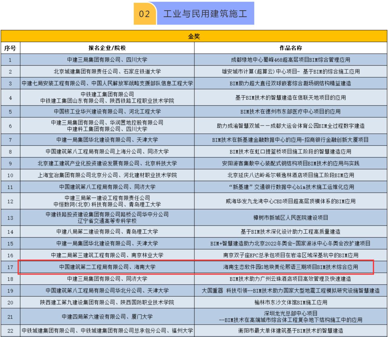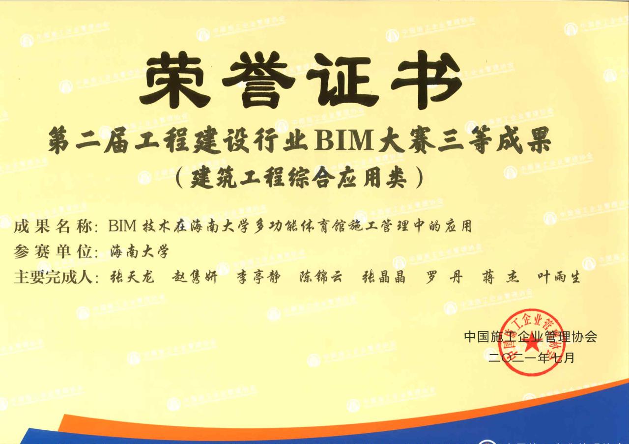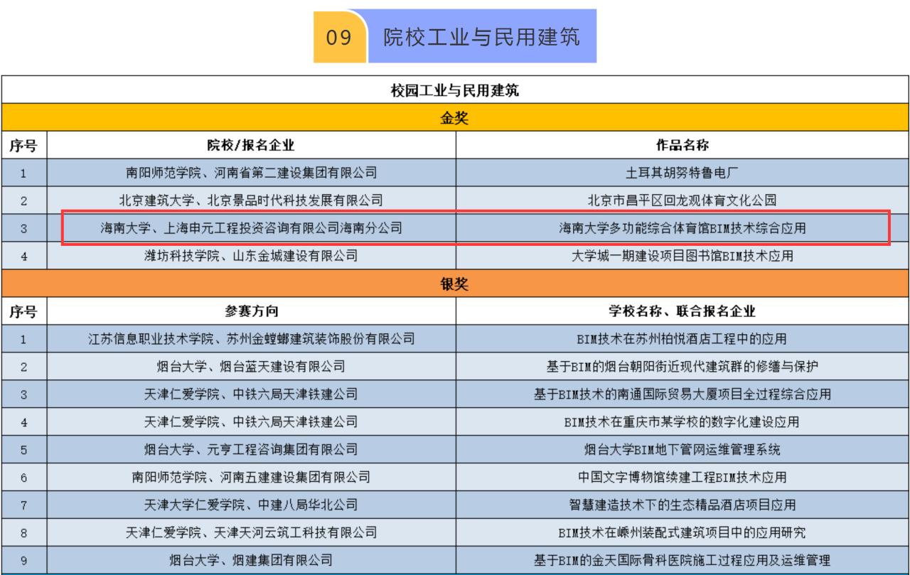 2021年11月11日,2021第四届“优路杯”全国BIM技术大赛顺利落下帷幕。DB视讯BIM协会申报的项目从1145个大赛参赛作品中脱颖而出,继2020年后再次蝉联金奖项目!由DB视讯和上海申元工程投资咨询有限公司海南分公司联合申报的“DB视讯多功能综合体育馆BIM技术综合应用”荣获院校组工业与民用建筑金奖,由中国建筑第二工程局有限公公司和DB视讯联合申报的“海南生态软件园G地块美伦熙语三期项目BIM技术综合应用” 荣获企业组工业与民用建筑金奖。