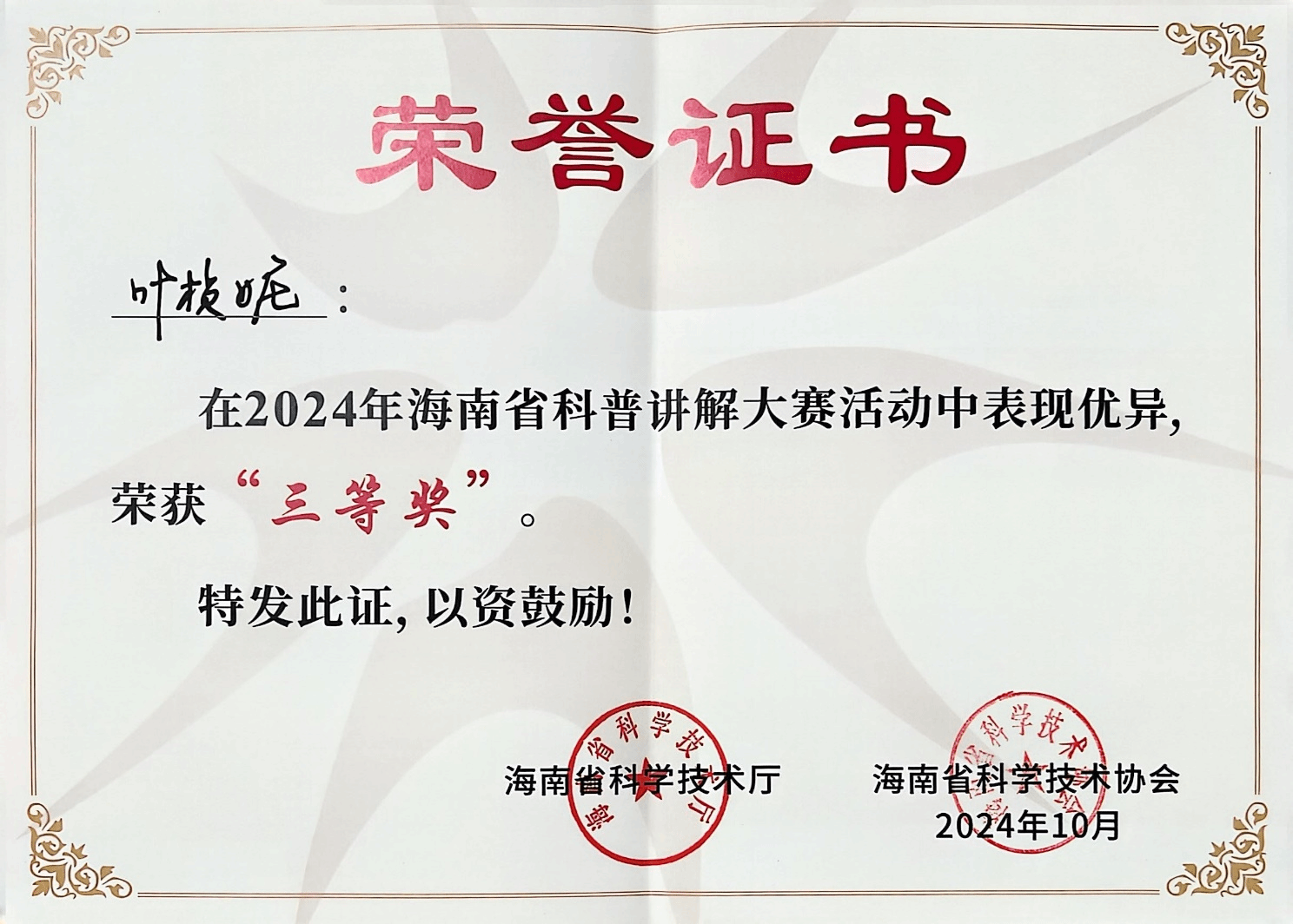 在刚刚落幕的2024年海南省科普讲解大赛中,DB视讯土木与建筑工程公司叶桢妮副教授以出色的表现获得三等奖,为公司争得了荣誉。本次大赛以“弘扬科学家精神 激发全社会创新活力”为主题,吸引了全省各行各业的143名选手参与。海南省科普讲解大赛是全省科普工作者沟通交流、展示风采的重要平台,也是海南科普活动的一张亮丽名片。自2015年以来,大赛已成功举办十届,参与人数持续上升,活动形式不断创新,活动层次不断提高,已成为目前全省范围最大、水平最高、代表性最强的科普讲解竞赛。