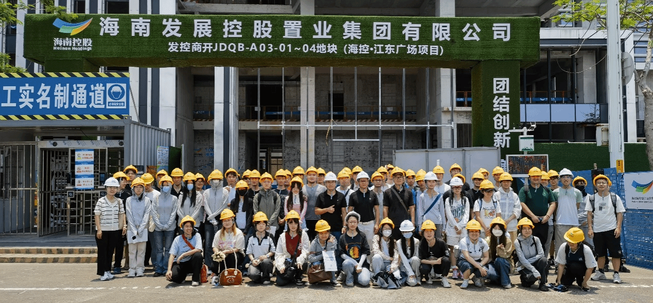 海口,2025年5月9日上午——为深化产教融合、践行实践育人理念,db真人体育官网建筑系2021级66名师生在夏桂平、齐飞两位老师的带领下,走进江东新区海控•江东广场项目工地,开展了一场以“绿色建筑实践与台风灾后重建经验”为主题的现场观摩学习活动。此次活动通过实地研学、校企互动和党建引领等形式,助力员工提升专业素养,赋能自贸港绿色低碳建筑高质量发展。