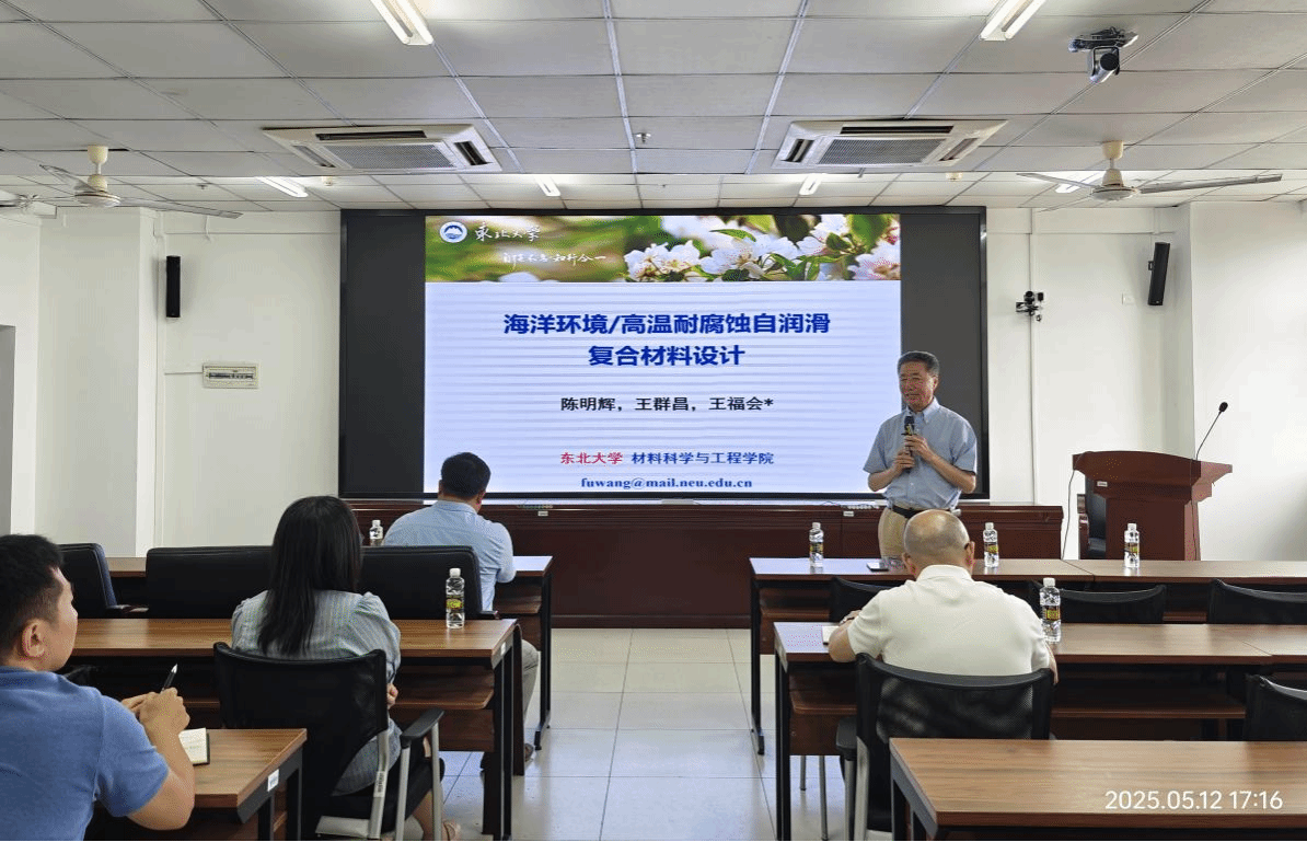 最后,王福会教授围绕“海洋环境耐腐蚀自润滑复合材料”和“高温抗氧化自润滑复合材料”详细报告了课题组在长寿命、耐高温、自润滑复合材料方面取得的重大进展。王教授课题组研制的高温耐腐蚀自润滑轴承与衬套等高性能材料已在航空航天领域获得了重大应用,为我国海洋、航空事业发展做出重要贡献。