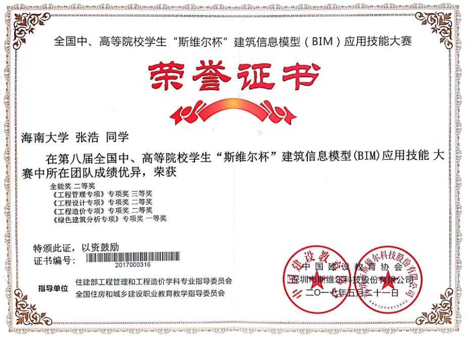 db真人体育官网由曹新颖、刘金灿两位老师全程专业指导,由曹新颖老师带队,张浩、李可青、康露瑶、王琴、蔡剑洪五名同学组成的“A408”代表队前往浙江理工大学参赛,在比赛中团结协作、相互配合,最终获得该项赛事历史性的突破,取得辉煌成绩,一举拿下比赛全能二等奖、绿色建筑专项一等奖、工程造价专项二等奖、工程设计专项二等奖、工程管理专项三等奖,并由于出色的组织、完美的团队配合,获得“优秀团队组织奖”。