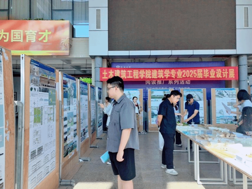 2025年6月9日,db真人体育官网建筑系年度毕业作品展在校图书馆隆重开幕。此次展览汇聚了建筑系全体毕业生及导师的智慧结晶。建筑系领导及各位指导老师亲临现场,充分体现了对青年学子创新成果的高度重视和殷切期望。