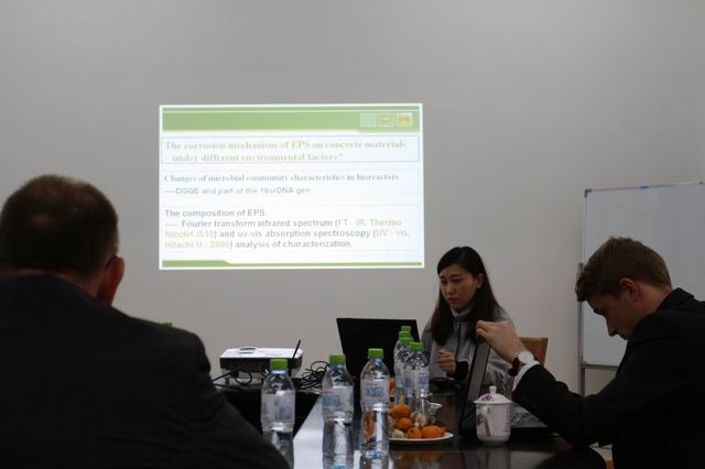 24日下午3:00,Bernhard Middendorf教授在海洋工程材料研究中心会议室进行了题为《Application research of ultra-high performance concrete(UHPC) in Europe》的全英文报告,报告主要就超高强混凝土在欧洲的应用研究、低收缩水泥基材料及特殊混凝土氯离子渗透的混凝土外加剂的影响几方面内容进行了介绍,我公司汪峻峰教授指导的6名员工也用英文汇报了自己的研究内容,中德双方教授、员工相互提问、讨论交流,学术氛围十分浓郁。