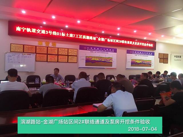 2018年7月4日下午,中铁十六局组织对南宁市轨道交通3号线一期工程滨湖路站—金湖广场站区间2#联络通道及泵房冻结法加固开挖条件进行评审,公司教师胡俊副教授应邀参加评审并担任此次开挖条件验收评审专家组组长。评审期间,胡俊老师与参会单位南宁轨道交通集团有限责任公司、中铁十六局集团、兖矿新陆建设发展有限公司等相关负责人员充分交流,达成了产学研合作意向。同时,此次参会提升了公司在国内隧道及地下工程领域的知名度。