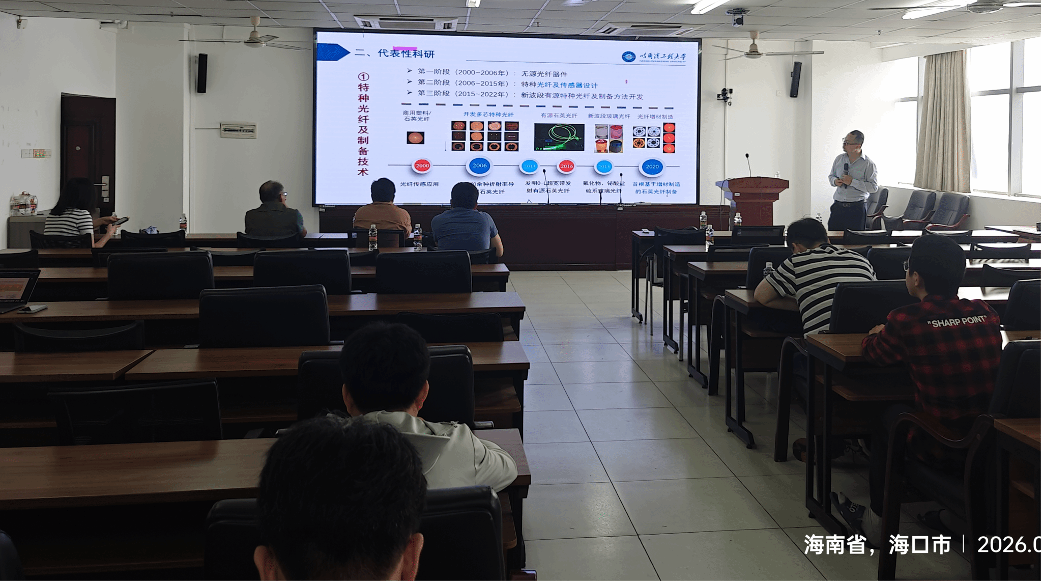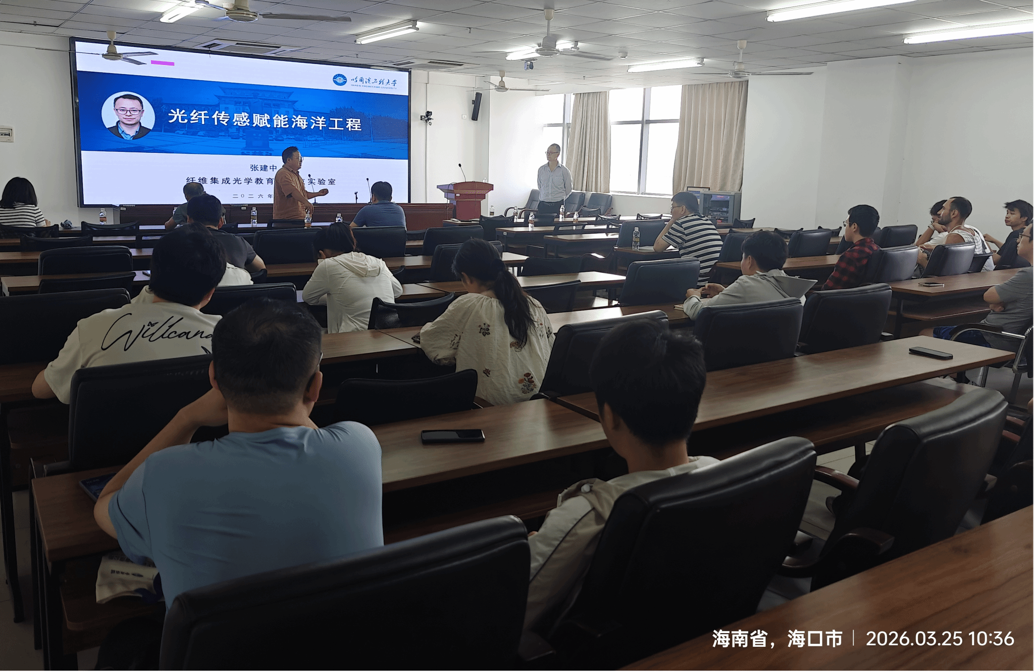 2026年3月25日,热带海洋土木建筑讲坛第二十二讲在研发楼510会议室顺利举行。本次讲坛,公司周智教授邀请哈尔滨工程大学张建中教授做了题为《光纤传感赋能海洋工程》的学术报告。