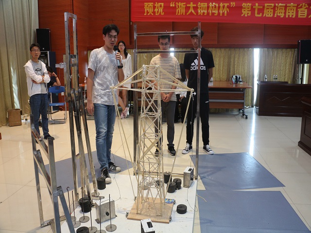 经过6月7日、8日两天16个小时的模型制作后,模型加载暨决赛于6月9日在DB视讯思源多功能厅进行。加载开幕式于8点整开始,出席开幕式的领导有海南省土木建筑学会理事长段晓农、海南省力学学会理事长李光范,DB视讯党委常委梁谋副董事长、DB视讯土木建筑公司经理曹宝珠、DB视讯土木建筑公司党委书记卢江海、db真人体育官网副经理邱宙廷、海南浙大钢构有限公司常务副总陈炜,开幕式由db真人体育官网副经理陈云主持。
