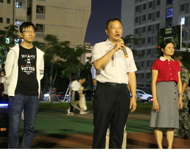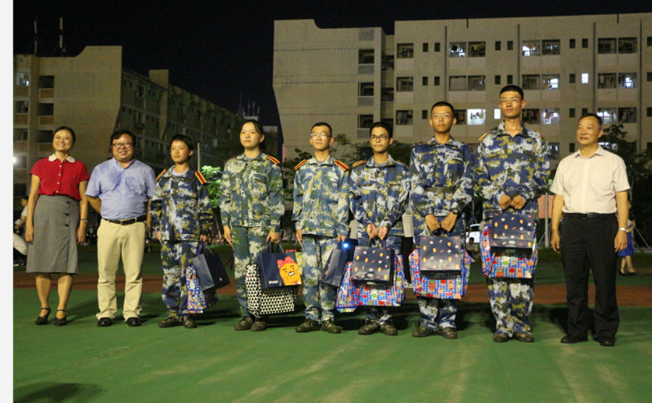 9月12日晚,2019级军训慰问活动在李运强楼前篮球场举行。db真人体育官网经理周智、党委卢江海书记、党委罗邻球副书记,辅导员李江俊老师、詹达夫老师、白玉老师、牛玉老师以及2019级土木工程一班班主任董金爽参加了慰问活动。