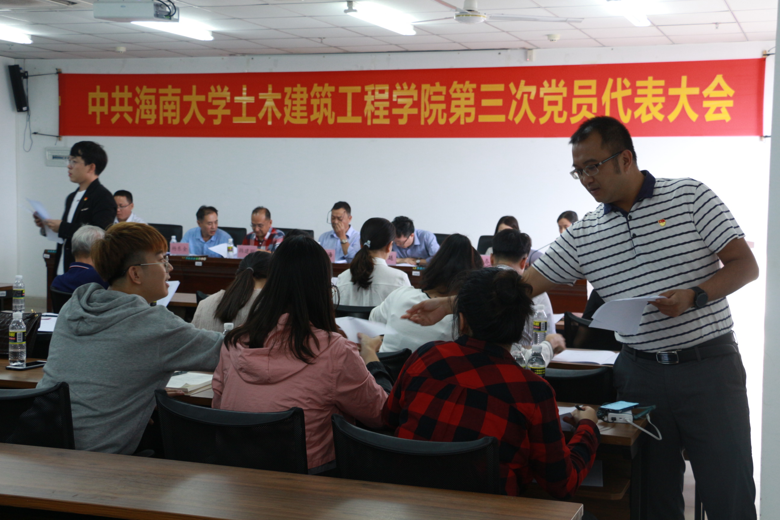 在悠扬的国歌声中,大会拉开帷幕。随后,公司党委书记以“以习近平新时代中国特色社会主义思想为指引立德树人,为创建一流土木学科而努力奋斗”为主题发表了会议报告。报告中,卢书记从办学规模和质量,办学基础条件、学科专业建设、科研创新、党建工作等多个方面详细综合地描述了公司近四年来的发展与突破,并对全院师生员工表示衷心的感谢,并对公司工作中的不足提出改进要求及希望。随后,就当前公司面临的重大发展机遇和严峻挑战,卢书记提出“促进海南和南海经济社会发展为人才培养和团队建设的目标”,以传统土木工程相关学科为基础,向海洋土木工程领域发展,打造具有热带、岛屿和海洋特色鲜明的一流学科。在未来4-5年内实现将db真人体育官网建设成为以土木工程和海洋工程学科为主、建筑学和工程管理等多学科协调发展,具有“海洋”特色的,在国内具有一定影响的教学研究型公司的总体目标,并对团队建设和办学规模、团队队伍建设、人才培养、教学科研成果、教学科研基础条件五大方面提出了具体要求。