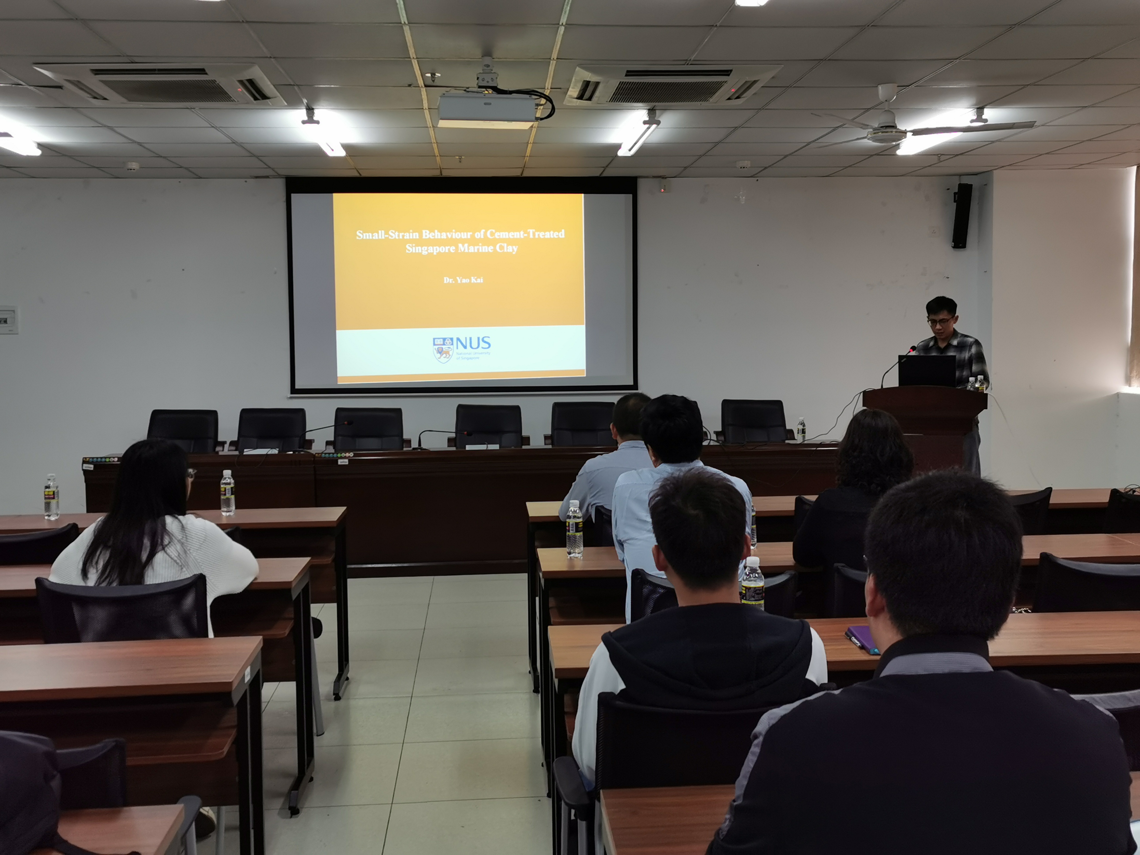2020年1月4日上午10点,受公司胡俊老师国家自然科学基金项目(51968019)的邀请,新加坡国立大学姚凯博士后研究员到公司作了题为《Small-strain behavior of cement-treated Singapore marine clay》的学术报告。本次学术报告在DB视讯研发楼510报告厅进行,海南省水文地质工程地质勘察院和海南深勘勘察设计有限公司的相关负责人,以及公司部分教师和研究生参加了此次报告会。