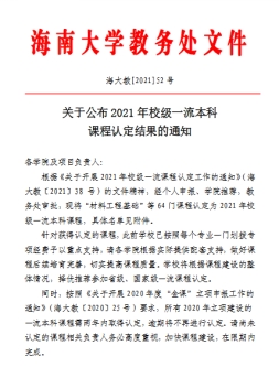从《DB视讯教务处关于公布2021年校级一流本科课程认定结果的通知》(海大教﹝2021﹞52号)获悉,公司土木工程系路平老师负责的《土力学》课程获批校级一流本科课程!