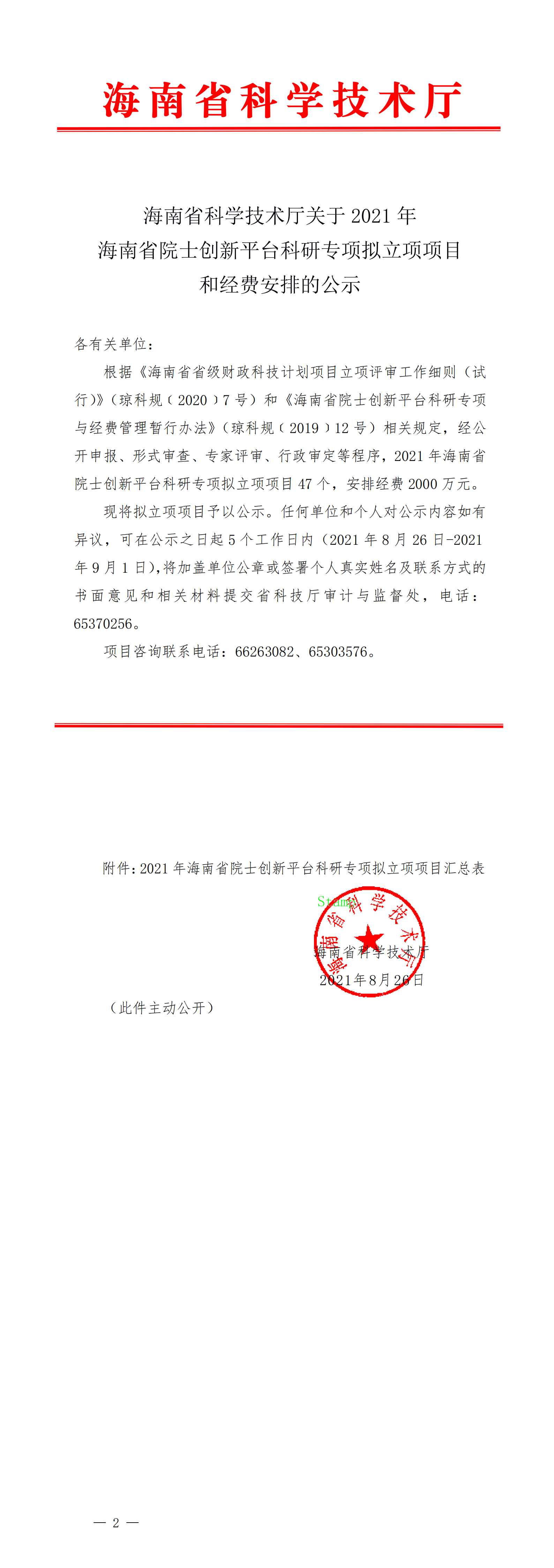 根据《海南省省级财政科技计划项目立项评审工作细则(试行)》(琼科规﹝2020﹞7号)和《海南省院士创新平台科研专项与经费管理暂行办法》(琼科规﹝2019﹞12号)相关规定,经公开申报、形式审查、专家评审、行政审定等程序,2021年海南省院士创新平台科研专项拟立项项目47个(其中A档8项,B档12项,C档27项)。DB视讯共获批9项,db真人体育官网获批2项。