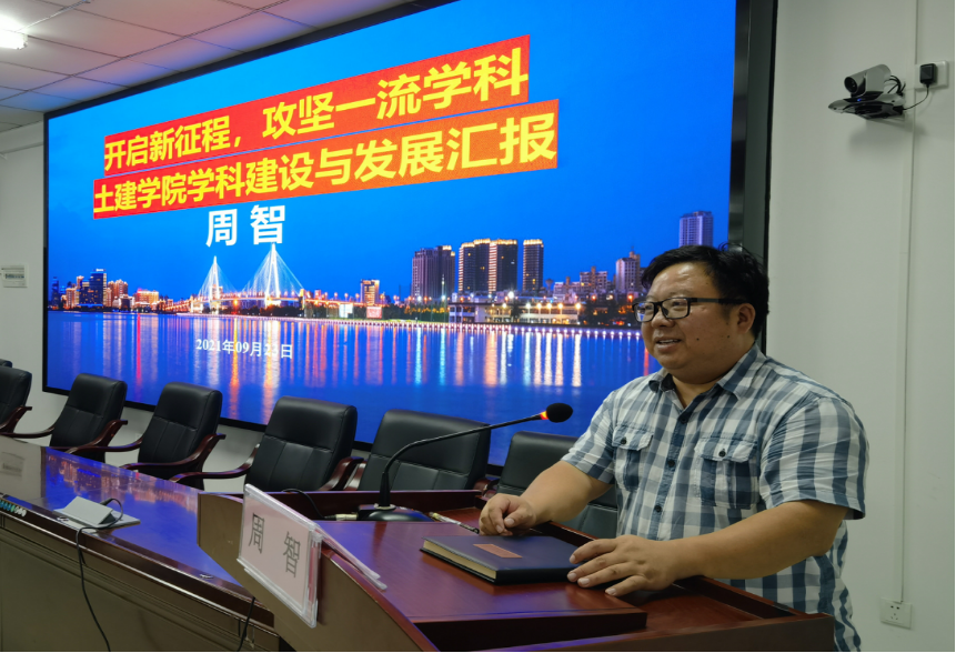党委委员、公司经理周智教授作《开启新征程,攻坚一流学科——土建公司团队建设与发展汇报》为主题的报告。他重点从形势与使命、发展与现状、挑战与任务、思路与举措四个方面对公司“十三五”期间取得的成绩、“十四五”期间面临的挑战以及应对的思考路径、公司新学期的重点工作进行了阐述。周智强调,在只有土木工程一级学科硕士学位点的基础上,新增了土木工程一级学科博士学位点,新增了“土木水利”专业硕士学位点,并且土木工程本科专业列入国家级一流本科专业建设点,土木工程本科专业认证申报获得评估中心受理。虽然取得了了不起的成绩,但是我们须正确看待,认清使命,成绩特征是给了我们建设机会,而不是成果,现有成绩与“一流学科”差距甚远,同志们须继续发奋努力。我们须继续引进及培养国家级人才和其他各层次人才,充实团队队伍;我们须继续申报争取更多的纵向科研项目和横向项目;我们须继续突破省部级、国家级成果奖项;我们须继续添加省部级、国家级教学和科研平台;我们须以工程教育认证为抓手全力开展金课建设,全面提升创新型人才、应用型人才、国际化人才培养水平。