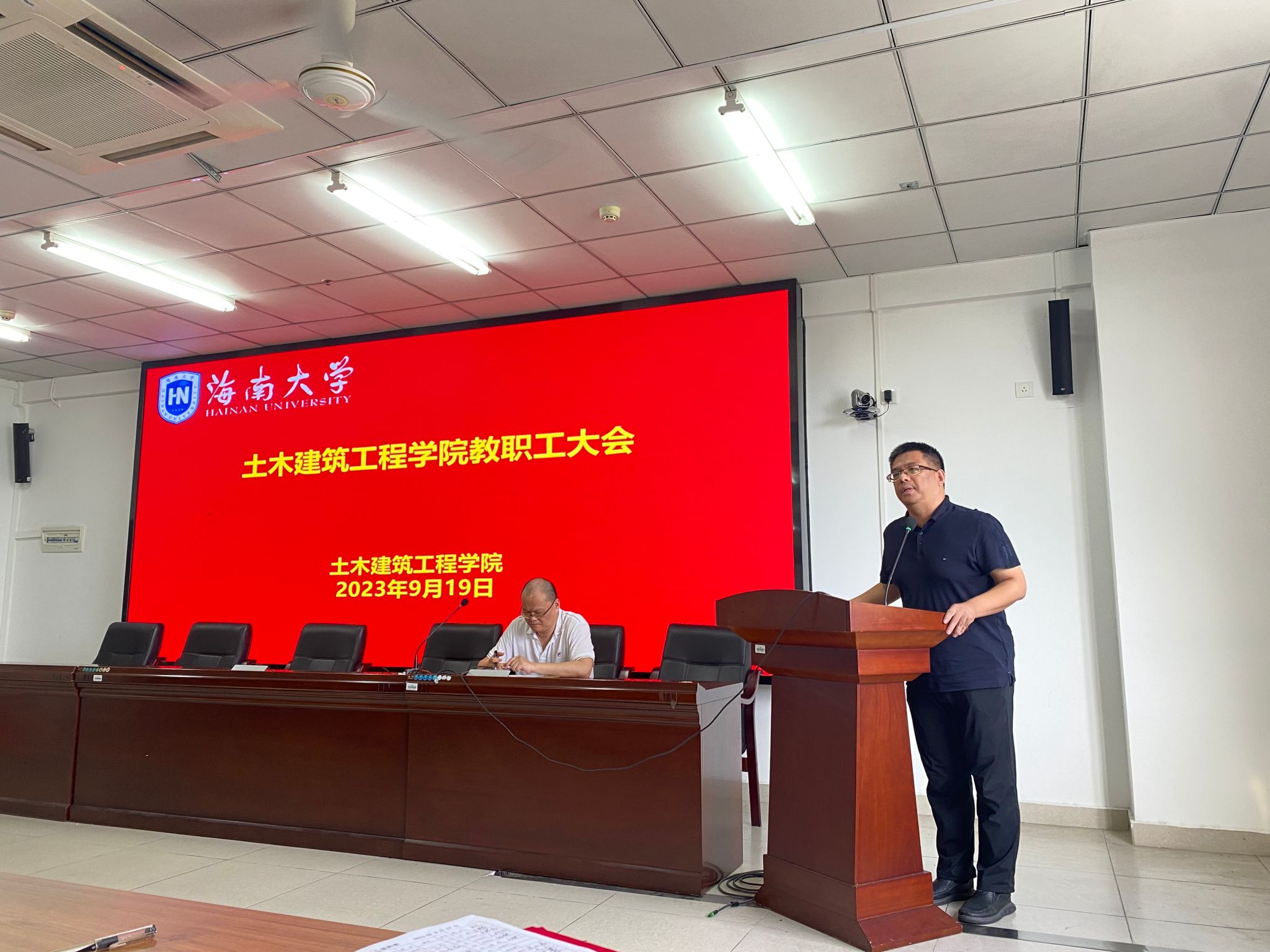 2023年9月19日下午,db真人体育官网新学期教职工会议在研发楼510报告厅召开。党委副书记万民、经理周智、副经理张友良、副经理田元福、副经理辛大波、副经理薛春霞、系主任、实验教学中心负责人、科室管理职员和全体教师等参加会议。会议由公司党委副书记万民主持。会议分三个议程进行