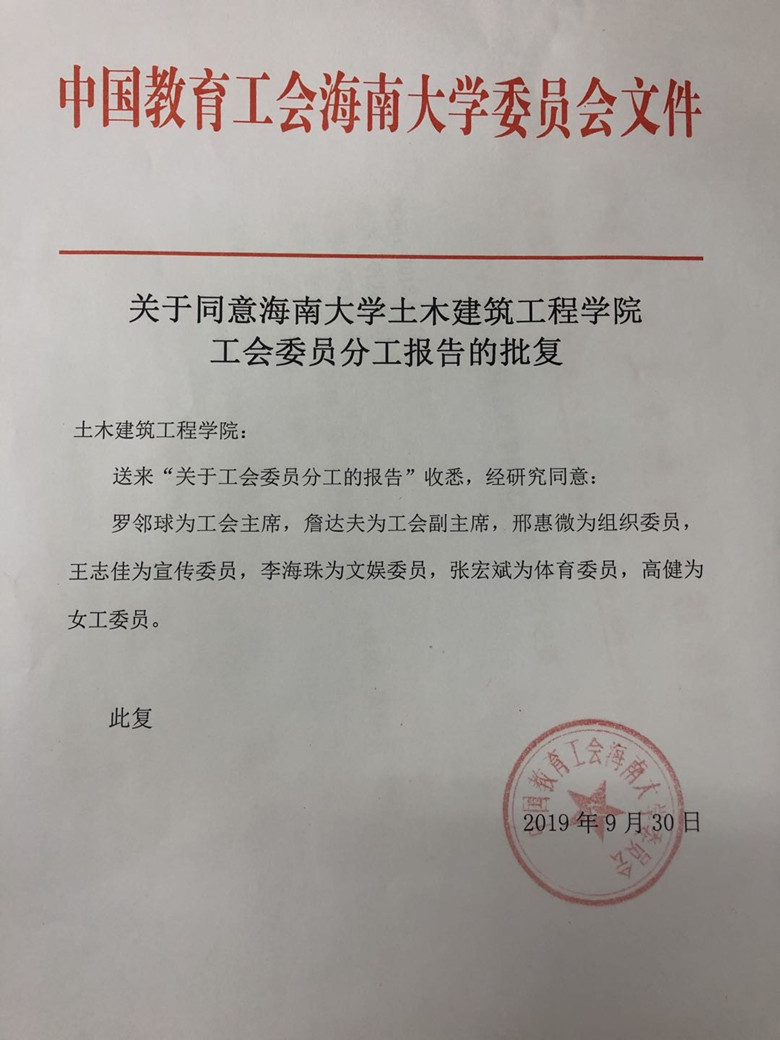 中国教育工会DB视讯委员会关于db真人体育官网工会委员分工的批复