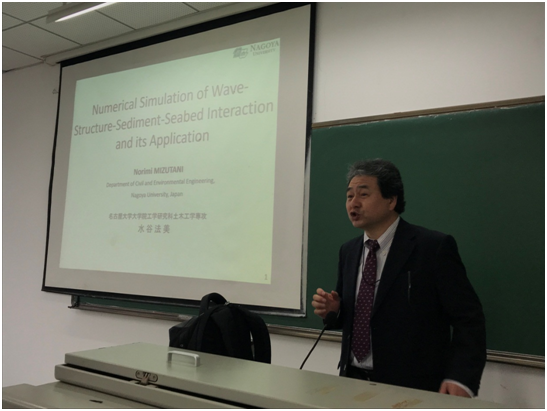 2017-2018学年冬季小学期,海洋工程与技术系邀请了日本名古屋大学工学研究科科长水谷法美教授来华访问。水谷教授以“Numerical simulation of wave-structure-sediment-seabed interactions and its application”为题,于2018年1月16日上午8:30在5-204教室进行了一次学术讲座,讲座由海洋工程与技术系教师任兴月主持,海洋工程与技术系全体教师及2015、2016级学术均参与了本次学术活动。讲座的过程中,水谷教授还为员工介绍了日本留学政策和名古屋大学申请方案,并针对我国CSC奖学金、日本文部省奖学金及名古屋大公司级奖学金的申请过程做了详尽的介绍。讲座提问环节,员工与水谷教授有问有答,气氛活跃。