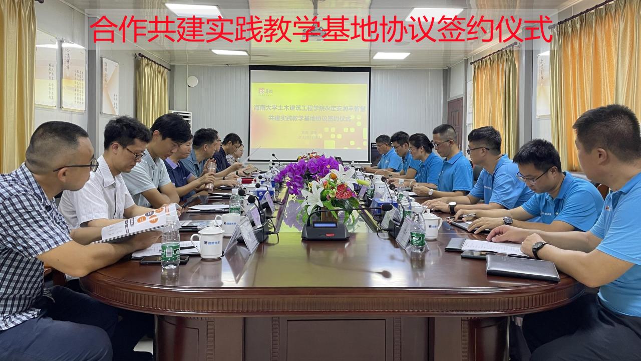 2022年7月8日上午,db真人体育官网与定安润丰智慧建筑有限公司举行合作共建实践教学基地协议签约仪式,会议在安润丰智慧建筑有限公司PC预制构件基地召开。公司党委委员、副经理邱宙廷致辞,并代表公司与企业签约,副经理田元福为实践教学基地揭牌,并向兼职指导教师颁发聘书。公司教师赵菲、张国策、陈科宇、崔洁、吉志伟、姜川等代表参加了会议。定安润丰智慧建筑有限公司副总经理张颖、技术总工张欢、生产副总宋祥兵、市场总监林康贵、生产经理 唐尧、人力行政经理林浩、技术质量部主任工程师梁昌犹、技术质量部主任工程师邓发茂等出席会议,并在会议前,陪同教师们观摩了PC构件生产车间、玄武岩纤维加强筋生产线。