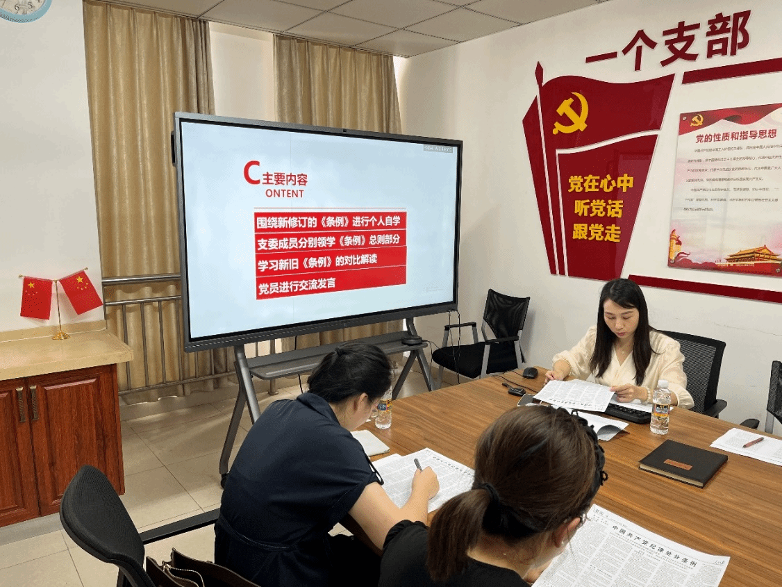 本次读书学习过程分为“《条例》个人自学”、“支委领学”、“新旧《条例》对比解读”和“交流发言”四个环节。会上,刘雪副书记领学了《条例》部分内容,贯彻落实了公司和公司的学习指导精神,坚持原原本本学、逐章逐条学、联系实际学,学懂弄通吃透《中国共产党纪律处分条例》修订的重大意义、主要内容和精神实质。每位与会党员人手一份学习资料,重点学习了第一编总则的第一章至第五章内容,通过个人阅读自学、支委领读学习、交流讨论等环节,对总则部分的每一条内容进行了较为深入的学习,并研读了关于新旧《条例》对比的解读学习资料。