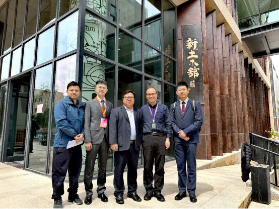周智经理(左一)与清华大学土木工程系系主任冯鹏教授(右一)调研结构工程实验室