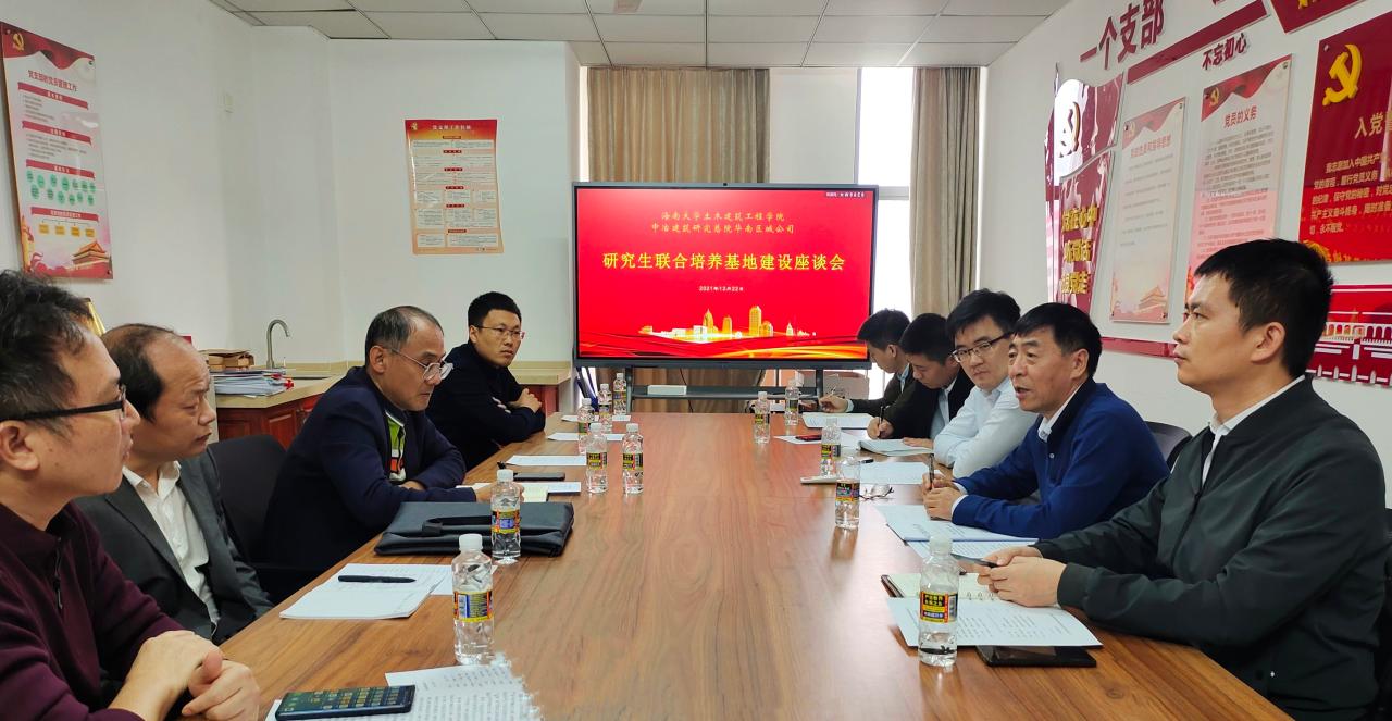 db真人体育官网和中冶建筑研究总院(海南)有限公司联合申报的“DB视讯研究生联合培养基地”,获得DB视讯批准予以立项建设。12月22日,db真人体育官网、中冶建筑研究总院(海南)有限公司在DB视讯举行座谈会,共商校级研究生联合培养基地建设等事宜。db真人体育官网经理周智、中冶建筑研究总院华南公司首席科学家侯兆新分别带队出席。双方希望进一步加强全面合作,实现优势互补,校企合作跃升新台阶。