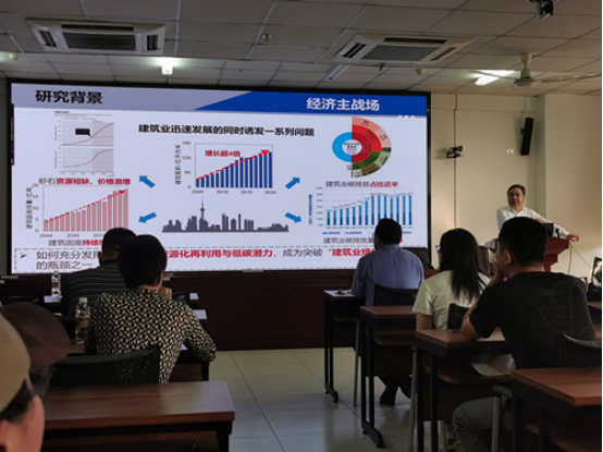 肖建庄教授的报告分别从混凝土再生原则与方法、再生混凝土制备理论、再生混凝土的创新发展、再生混凝土的应用准则、再生混凝土的专委会十年回顾几方面进行了介绍,并分享他们团队在建筑工程行业方面所取得的科研成果及应用他建议我们在今后设计建筑工程时,一定要从安全性、经济性、低碳性三方面考虑。报告结束后,肖建庄教授就师生感兴趣的问题进行了解答。