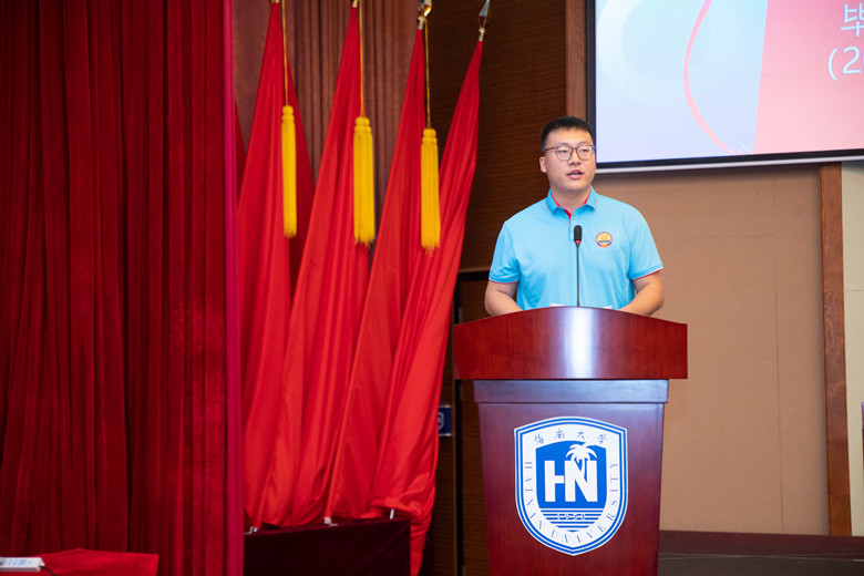 2019级工程管理专业员工张书赫作为在校生代表献上了对毕业生的祝福,表示将以学长学姐们为榜样,在中华民族伟大复兴的接力跑中,跑出青年风采,跑出优异成绩,不负时代,不负韶华,不负母校培养,用自己的实际行动为母校增光、为人生添彩、为国家和社会贡献青春力量!