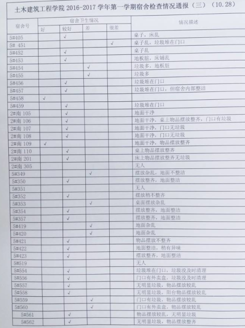 2016-2017学年第一学期宿舍检查情况通报(三)