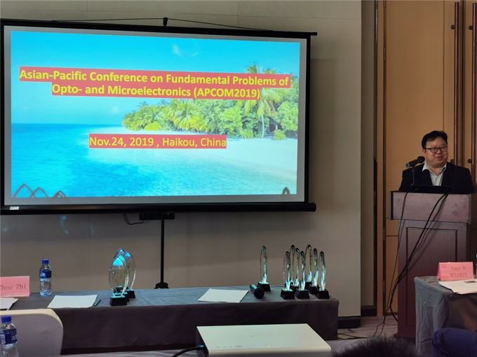 2019年11月23-24日,由db真人体育官网、俄罗斯国家科公司远东分院以及大连理工大学承办的第十九届亚太光电与微电子基础问题国际会议(19th APCOM Asia-Pacific Conference on Fundamental Problems of Opto- and Microelectronics, APCOM2019)在海口新埠岛诺富特酒店成功召开。俄罗斯科公司院士、俄罗斯科公司远东分院副经理YuriKulchin、俄罗斯远东科公司自动化与控制研究所所长Roman Romashko通讯院士、大连理工大学赵明山教授,以及俄罗斯圣彼得堡圣光机大学AlexeiKamshilin教授、托木斯克州立大学 StanislavShandarov、俄罗斯自动化与控制过程研究所A.V. Belaventseva和A.Zhizhchenko博士、哈尔滨工业大学董永康教授、DB视讯王爱民教授、张友良教授、周智教授、刘婉秋教授等十几名专家学者做了主旨及特邀报告。大会还安排了21个粘贴(Poster)报告。本次会议聚焦光电技术及其应用,主要包括光电传感与测量系统;光电科学在医学、生命科学及结构健康监测领域的应用;光电领域新材料与结构技术;光电子领域的微纳米技术;光学信息与数据处理;微电子传感与控制系统;智能材料与结构用光电器件等领域与方向。