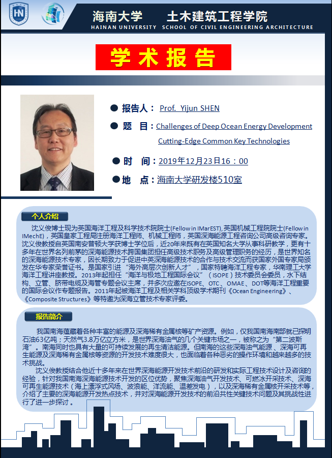 [学术讲座]Challenges of Deep Ocean Energy Development Cutting-Edge Common Key Technologies