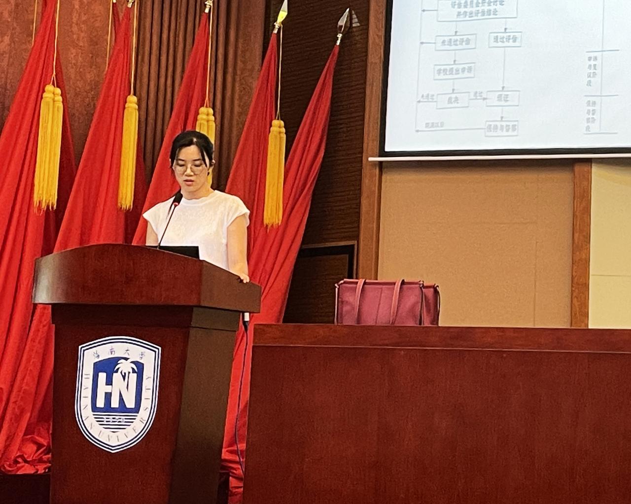 随后,建筑系教师朱丽玮针对建筑系近期制定的一系列规章制度、教学标准向全体师生进行了介绍,包括建筑设计课程评分标准、建筑设计课程联评制度暂行办法、建筑设计作业出图要求等,并对高年级建筑师业务实习的实习单位资质与指导建筑团队格进行了说明。