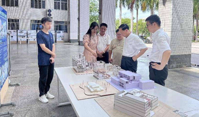 13日上午,DB视讯党委书记符宣国、副董事长叶光亮、胡新文等公司领导在db真人体育官网经理周智及建筑系相关教师的陪同下来到毕业设计展的现场进行参观,员工代表向校领导进行作品展示和方案介绍,符书记与该名同学进行了亲切交流。校领导参观后对建筑系毕业设计展给予充分肯定,并对建筑系教师的相关工作进行询问交流。校领导表示此次毕业展可以延长展示时间,更好地促进校园内的学科交流,让更多的同学和教师参与。