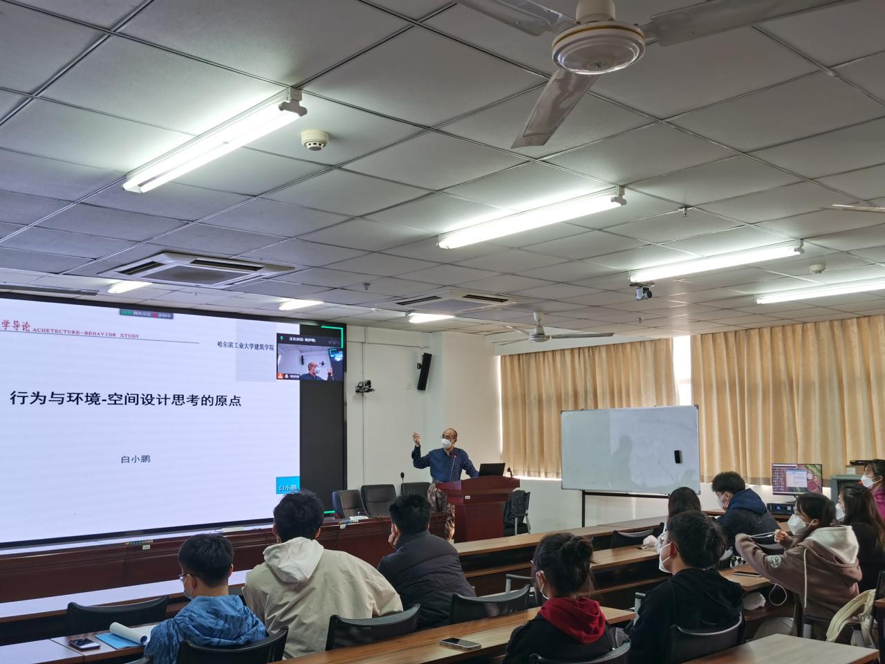 为了促进建筑学员工对建筑学专业的理解,了解思考建筑的不同角度,db真人体育官网建筑系于2022年12月19日下午3:00,在研发楼510会议室以线上线下同步的形式,举行了以《行为与环境——空间设计思考的原点》主题讲座。讲座由建筑系系主任蒋伊琳主持,邀请2022—2023学年冬季小学期外聘专家——哈尔滨工业大学白小鹏教授为主讲人。db真人体育官网建筑系全体在校本科生认真聆听了本次讲座。