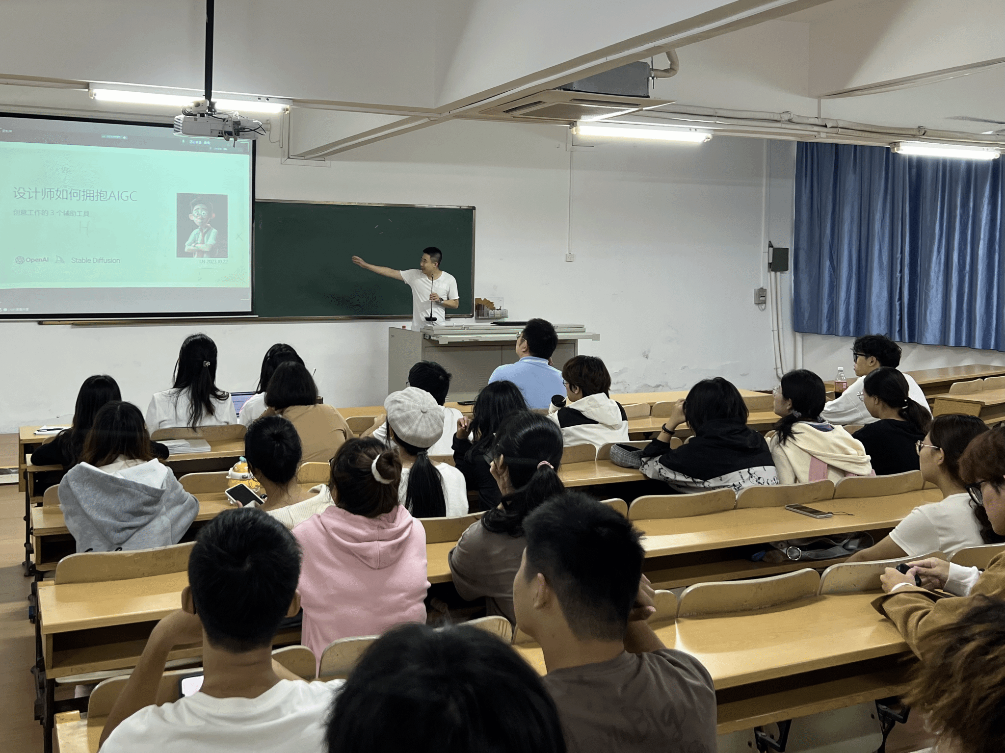 人工智能(AI)技术的发展日益迅猛,已经覆盖到包括建筑设计工程在内的各个领域。为了帮助建筑学AI零基础的员工迅速了解相关知识,体会AI技术对于建筑设计能够带来怎样的帮助,2023年10月22日上午9:30,DB视讯土木建筑工程建筑系邀请招商蛇口东北公司设计部经理刘男博士开展“设计师如何拥抱AIGC”主题讲座。本次讲座由建筑系主任蒋伊琳主持,在海甸2号教学楼109以线上线下同步的方式进行,建筑系在校师生共计60余人认真聆听了本次讲座。