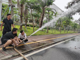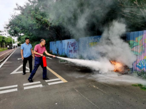 林德鑫老师为现场师生演示灭器材的使用。消防知识讲解后研发楼南侧空地进行了消防设施设备操作技能的现场培训,师生们学习灭火器、消防水带的正确使用方法,现场使用灭火器进行了消防灭火演练提高了火灾防范能力。